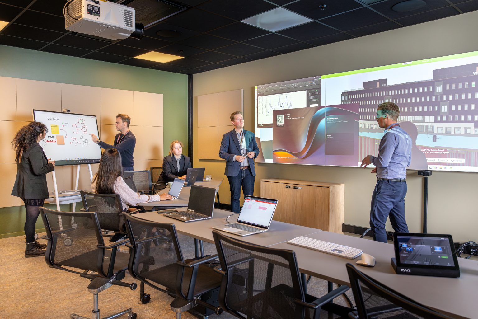 Cyviz together with Veidekke designed and implement three high-performance collaboration rooms at the company’s new headquarters. These spaces combine analog and digital tools in a single, intuitive environment; enabling engineers, project managers, and multidisciplinary teams to work together naturally, whether in person or remote.