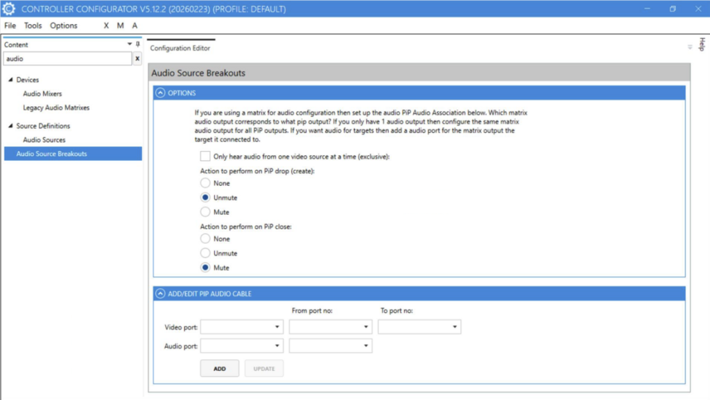 - Ability to choose range of video output ports when defining Audio Breakouts.