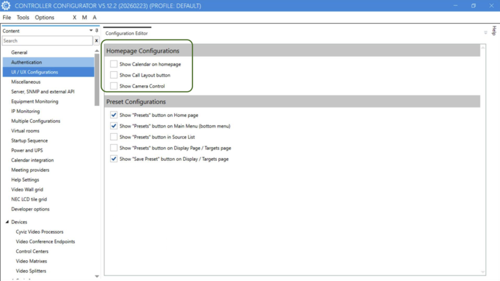 - Clear output section on Matrix configuration page now shows if Clear output is for Video or Audio.