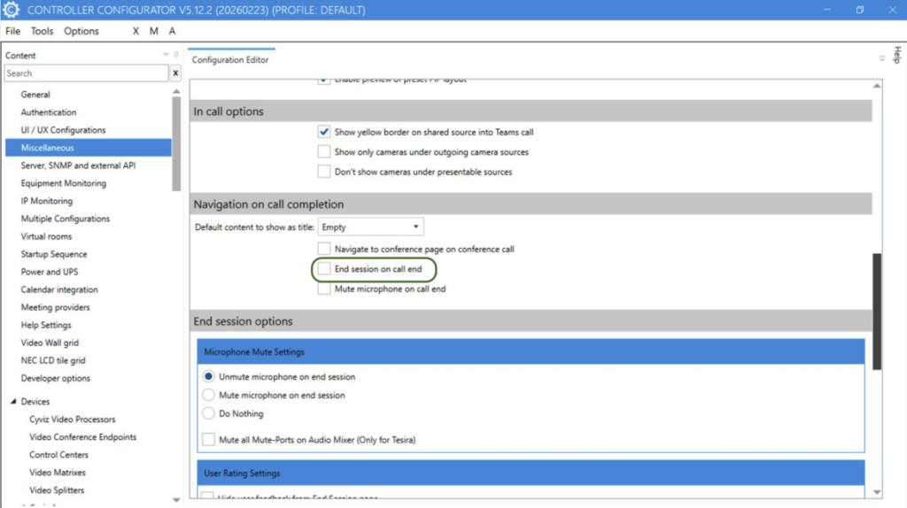 - New Config option to trigger End Session when call ends.