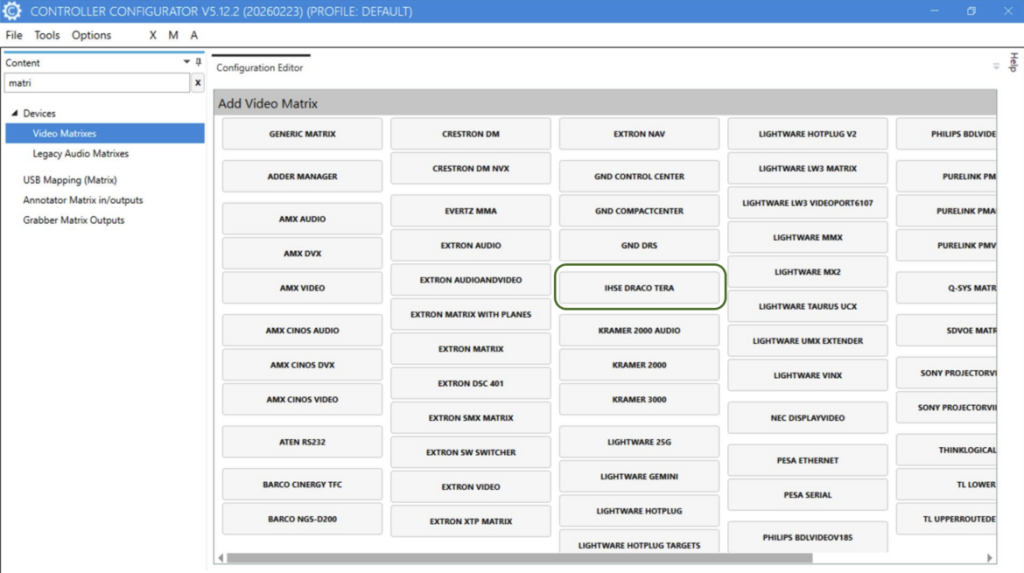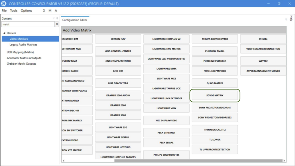 - SDVOE Matrix integration – Implemented and tested for Lightware TPN series products.