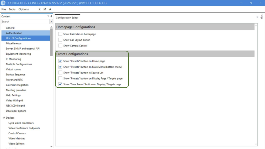 - New config option to Controller visibility to Preset buttons. Also added option to make presets visible in Source List.
