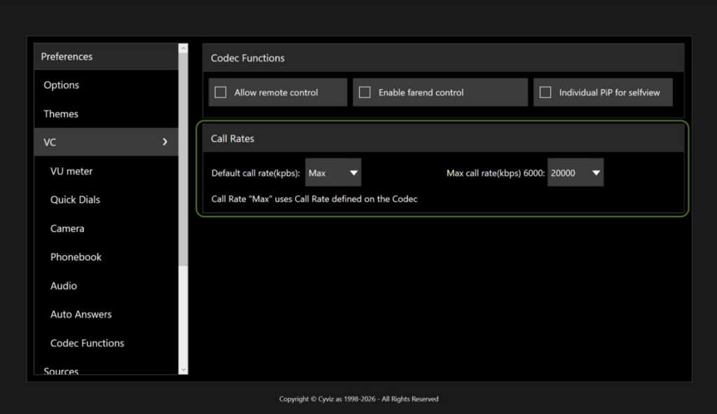 - Call Rate option for Cisco- Set max to use call rate configured on Codec.
