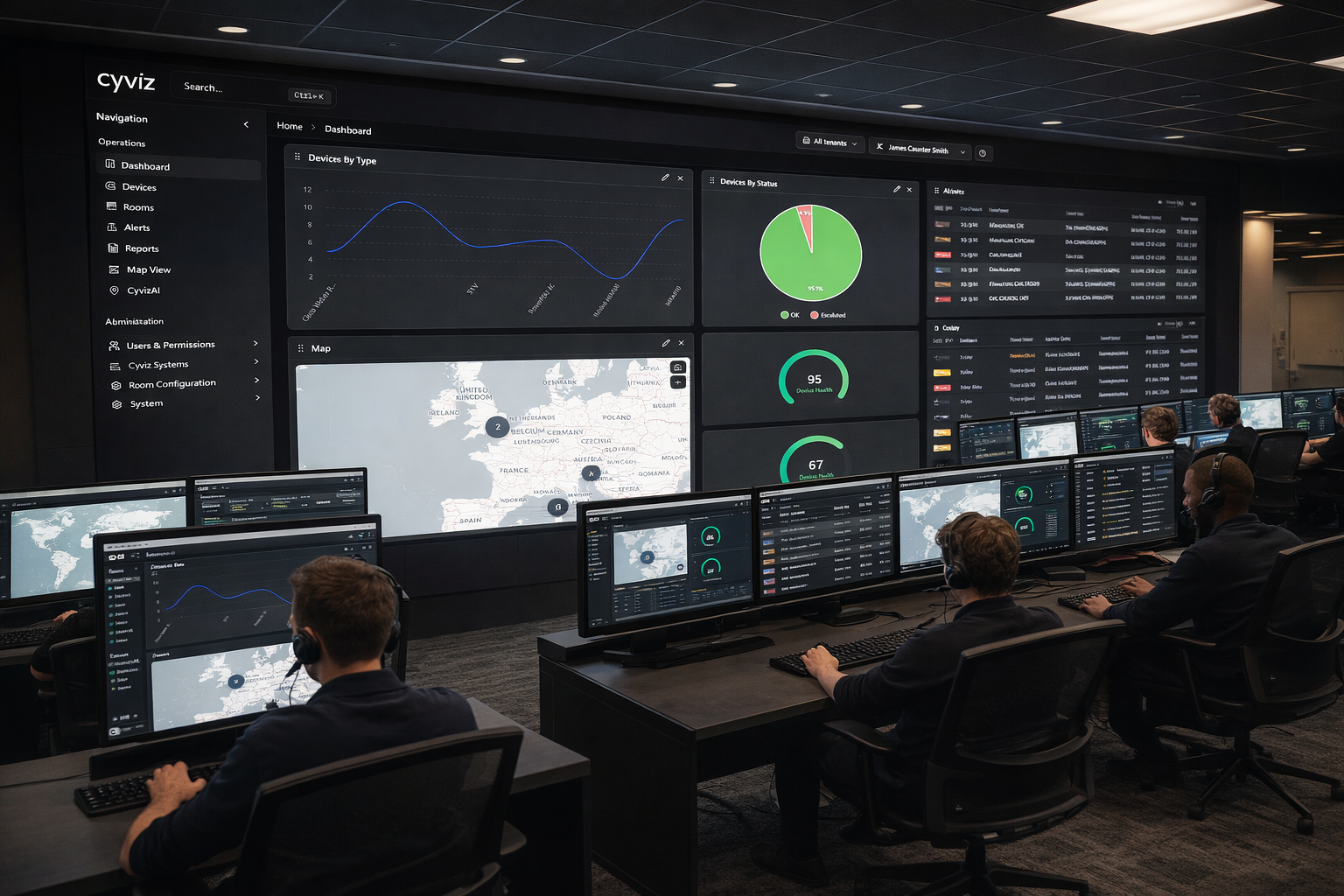 AI is becoming a core capability of the Cyviz Management Platform. We are embedding an AI assistant built on deep domain knowledge in AV and IT to deliver contextual, actionable insights, helping operators understand issues faster and act with confidence. Our approach introduces AI‑guided operations step by step, combining human control with increasing automation for low‑risk scenarios, while maintaining the reliability required in mission‑critical environments.